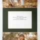 Elegant custom gold typography Merry Christmas and Happy New Year greetings, single photo template and text fields on chic sage green background. Panels feature additional text field and photo templates.