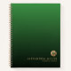 Elegant Modern Luxury Brushed Metallic Gold Monogram Medallion Initial Name Title Custom Text Emerald Green Gradient Background Notebook