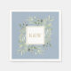 Elegant Gold Monogram Greenery Dusty Blue Napkin