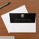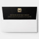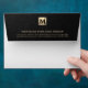 Elevate your professional image with our Black Leather Luxury Gold Initial Return Address Envelope. Designed for consulting firms and other professional services, this envelope features a black leather print back flap adorned with a brushed gold monogram initial in the right corner. Your company name and address are elegantly displayed in golden classic typography below, making a memorable impression on every piece of correspondence. With a focus on sophistication and attention to detail, this envelope adds a touch of luxury to your branding and communications, reflecting your commitment to excellence in the consulting and professional services industry.
