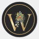 ELEGANT Gold MONOGRAM W with FRUIT AND FLOWERS Classic Round Sticker