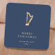 This simple and modern square sticker features a gold harp accompanied by "Merry Christmas" in elegant typography. Personalize it with your own custom text. Perfect for music ensembles, harpist, music teachers, for holiday party favors, or gifts.