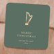 Elegant Gold Music Harp Christmas Green Square Sticker