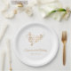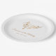 This editable elegant birthday paper plate features a wavy stave with music notes and a treble clef in faux gold on a white background, complemented by modern script typography. Perfect for adult birthday parties, musical events and music lovers. Customise it with your own text and make use of the editing tool to adjust the font size and placement. Should you require any help with customisation, please feel free to message us on Zazzle.
