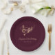 This editable elegant birthday paper plate features a wavy stave with music notes and a treble clef in faux gold on a burgunday background, complemented by modern script typography. Perfect for adult birthday parties, musical events and music lovers. Customise it with your own text and make use of the editing tool to adjust the font size and placement. Should you require any help with customisation, please feel free to message us on Zazzle.