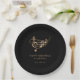 This editable elegant Happy Birthday paper plate features a wavy stave with music notes and a treble clef in faux gold on a black background. Perfect for adult birthday parties, musical events and music lovers. Customise it with your own text and make use of the editing tool to adjust the font size and placement. Should you require any help with customisation, please feel free to message us on Zazzle.