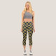 Elegant Gold & Navy Blue Chequered Pattern Capri Leggings