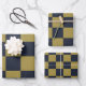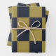 Elegant Gold & Navy Blue Chequered Pattern Wrapping Paper Sheet