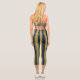 Elegant Gold & Navy Blue Vertical Stripes Capri Leggings