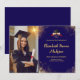 Elegant Gold & Black Graduation Invitations & Announcements | Modern Dark Blue Design with Laurel Wreath, Grad Cap & Diploma | Customisable Photo, School, Honours & Future Plans
