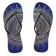 Gorgeous circular floral mandala design flip flops in luminous gold on deep blue background, inspired by mehndi henna body art. Coordinating leggings, tank top, tote bag and other accessories are available in our Gold on Blue Floral Henna Mandala Yoga collection and Elegant Floral Henna Mandala collection.