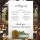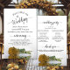 These wedding programs are elegant and tasteful, while still being budget friendly. The design features a single long-stemmed gold or yellow coloured rose lying on its side, reflecting in a pool of water with waves and ripples. The typography features lacy black script calligraphy, and there is room for details on the ceremony, the bridal party, and a short thank you.