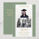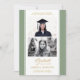 Pastel Green Elegant Gold Ornament Graduation 2 Photo Card. An elegant personalised graduation card with a trendy script and two gold ornaments. Add your name and 2 photos - you can use then and now photos of the graduate. Personalise the message on the backside of the card.