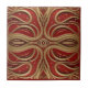 Intricate symmetrical design with gold-toned patterns on a deep red background. The motifs consist of curved lines and decorative details evoking a baroque or classical ornamentation style. The design has a three-dimensional appearance that highlights the contrast between the gold elements and the red background, conveying elegance and sophistication.