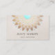 This classy lotus flower illustration has a beautiful fusion of retro, modern and new age. Mandala inspired faux gold leaf rosette medallion is perfectly accented by DIGITAL image of light tan linen background. Turquoise blue centre.*Please note that gold foil and wood surfaces are digital images - no texture or shine. An artistic and earthy business card ideal for those in the healing arts, landscape design, all natural or organic beauty, chic fashion or nature based consumer goods and services.