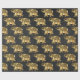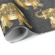 Elegant Gold Paisley Floral Elephant, Black Damask Wrapping Paper