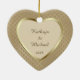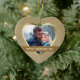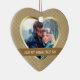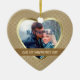 This elegant ornament features your special photograph within a shiny gold heart shaped frame against a pretty gold pattern background. Your text is in light gold on a dark antique gold banner that is framed in thin gold. The back of the ornament has a heart shaped field with more text fields for you to customize. A beautiful keepsake for that very important First Valentine's Day together!