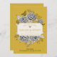 An elegant, vintage-style fall wedding invitation featuring beautiful botanicals popular peonies and butterflies with a gold background.
