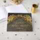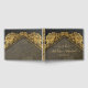 This customisable wedding guest book features gold paper peonies on a black gradient background gold and black text framed area. Just add your details to give it a custom feel and voila!
