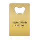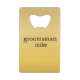 Add this modern minimalist personal touch to your bachelor party with personalised groomsmen bottle opener gifts. It features a simple personalised name with title and wedding date in black text with a classy gold metallic background. Perfect for best man, father of the bride, ring bearer, and more.