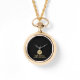 This gift features black monogram in gold circle element with name and title in gold classic serif font style on black background.