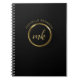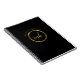 Stylish gold monogram notebook. Design features of modern trendy gold monogram with initials inside and name above it on a deep black background.