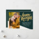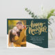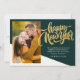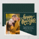 Modern, elegant New Year Card features handwritten calligraphy script ''Happy New Year'' in trendy gold colour on a green background, single photo and your message.