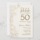 Elegant gold cream surprise 50th birthday party invitation with your photo on the back of the card. Trendy modern feminine design features botanical accents and typography script font. Simple floral invite card perfect for a stylish female surprise bday celebration. Can be customised to any age. Printed Zazzle invitations or instant download digital printable template.