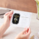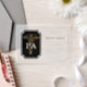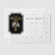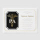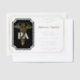 "PA" and a gold-toned caduceus on a black scalloped frame panel on left with your details on right, all surrounded by a gold tone double scalloped-edge frame on a clear background graduation party invitation design that can be personalised for physician's assistant school graduations. Composite design by Holiday Hearts Designs (rights reserved).