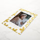 Share your holiday joy with this elegant photo card featuring your vertical photo framed by gold foil pine boughs on a white background. Personalize the design with your greeting, family name, and year in matching gold foil lettering. The back displays your custom message in black lettering, creating a simple yet luxurious holiday card.