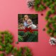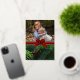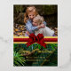 Add your single photo to to this elegant, Classic, timeless and traditional luxurious pine background with metallic gold foil lettering and accent frame and deep red ribbon and fancy bow.