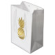 This glossy white gift bag features a chic gold pineapple design, perfect for tropical parties, beach-themed events, or stylish gifting. Ideal for birthdays, destination weddings, or boutique packaging with flair.