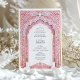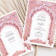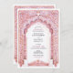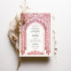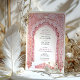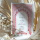 This luxurious wedding invitation showcases a breathtaking gold and pink filigree arch, inspired by intricate palace architecture and baroque detailing. The beautifully embossed floral and scrollwork patterns add a regal, timeless charm, perfect for elegant, traditional, and destination weddings. The combination of soft pink tones with lavish gold embellishments enhances the invitation’s sophisticated appeal, making it ideal for couples seeking an opulent and artistic wedding theme. The refined typography blends seamlessly with the ornate frame, ensuring a stunning and memorable wedding stationery design.