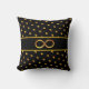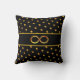 Chic beautiful and elegant gold polka dots and infinity symbol on black background Throw Pillow. Elegant Beautiful Decorative Pillows. Modern beautiful stylish home decor.