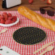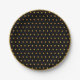 Beautiful paper plate with elegant gold polka dots framed with a golden circle on black background. Ideal for all celebrations.