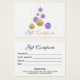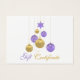 Stylish holiday gift certificate design featuring hanging gold and purple Christmas ornaments with a festive star accent in a tree shape. Perfect for boutiques, salons, spas or small businesses offering elegant seasonal gift cards. The luxurious color palette and clean layout make it ideal for Christmas and New Year promotions. Fully customizable text fields.