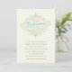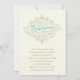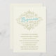 This pretty quinceanera invite features lovely gold flourishes surrounding the phrase "Quinceanera," which is written in a beautiful script in turquoise blue.