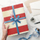 Elegant Gold & Red Christmas Stripe Pattern Wrapping Paper