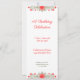 Elegant custom invitations with red script letters and a vintage printers mark etching with a decorated shield and a floral design of daisies and curling leaves in red and golds, restored from an antique manuscript.