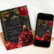 Elegant Gold Red Roses Royal Quinceañera Invitation