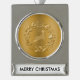 A stylish gold and silver reindeer Christmas ornament for the tree. It has a gorgeous, elegant gold reindeer with sparkles, jumping through a gold Christmas wreath. The text beneath (which read 'Merry Christmas') may be personalised if desired.