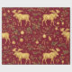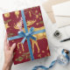 elegant gold reindeer red merry christmas pattern wrapping paper