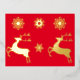 Send warm holiday wishes with this festive and elegant Christmas postcard. Featuring stunning gold foil illustrations of majestic reindeer and intricate snowflakes set against a vibrant red background, this postcard offers a touch of classic holiday charm. Perfect for personal greetings or business holiday mailings, it's a beautiful way to connect with loved ones during the festive season. Customise with your own message and enjoy the convenience of optional free guest addressing.