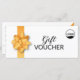 Delight your loved ones with our elegant gift voucher design. Perfect for any occasion, this customisable voucher with a golden ribbon design adds a touch of sophistication to your gifts. It is ideal for businesses looking to offer gift cards to their customers.