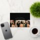 An elegant wedding photo save the date card featuring 3 photos, hand lettered calligraphy script and simple chic editable text on the front. The back has a wedding website. Click the edit button to customise this design.