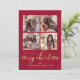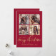 Elegant Gold Script 4 Photo Collage Red Christmas Holiday Card