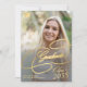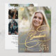 Elegant faux gold chic calligraphy script high school college university simple stylish graduation announcement with six custom photos and text template.