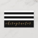 These elegant business cards for chiropractors are great for both networking and referrals. Design features black and white stripes on front and back, along with gold script chiropractor text on front.