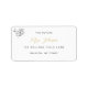 A simple but sophisticated, elegant and traditional yet chic and modern wedding return address label with modern gold script, made especially for the future bride. A single white rose and a small branch of eucalyptus leaves, drawn in graphite pencil, make a subtle and original decoration.