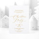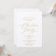 Invite your loved ones to a festive celebration with this elegant Christmas party invitation. Featuring refined gold script typography on a clean white background, this minimalist design exudes timeless holiday sophistication. Perfect for family gatherings, office celebrations, or formal seasonal parties, it’s a beautiful way to share the joy of the season.